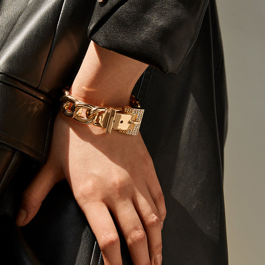 Sisslia Fashion Cuff Bracelet Wide Crystals Belt Buckle Cuban Curb Open Link Chain Bangle Bracelet For Women