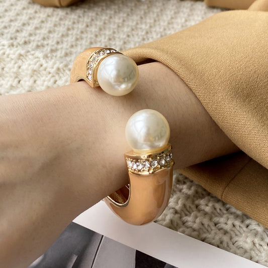 Sisslia New Design High Quality Golden Color Alloy Cuff Charm ABS Pearls Diamond Bangle For Women