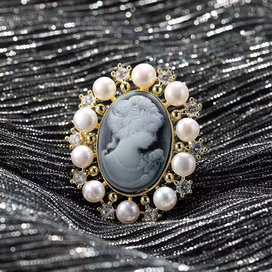 SISSLIA Vintage Lady Head Badge Brooches For Women Pearl Classic Beauty Portrait Figure Oval Retro Brooch Pin