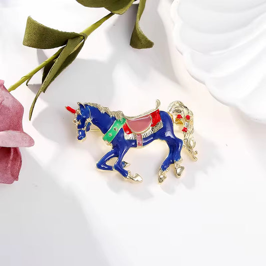 SISSLIA Fashion Jewelry Unique Blue Enamel Horse Unicorn Crystal Vintage Animal Brooches For Women