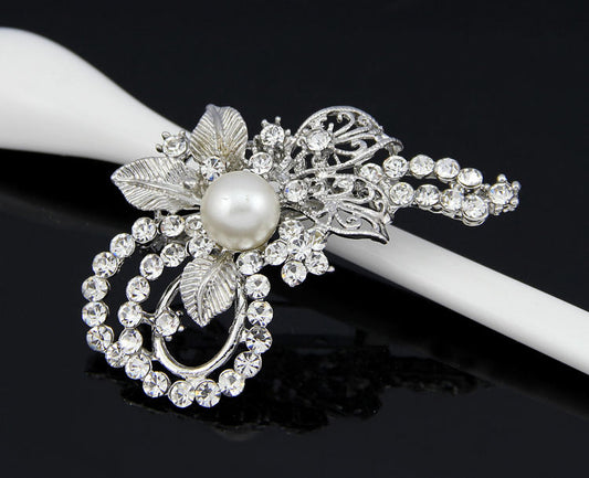 2023 Custom Wholesale Fashion Artificial Pearl Beads Silver Plated Crystal Flower Rhinestone Brooch For Women