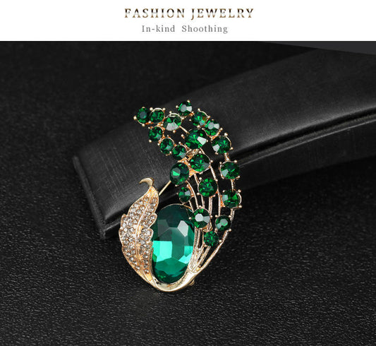 2023 Vintage Wedding Bride Big Emerald Crystal Drop Colorful Flower Rhinestone Drop-water Brooch for Woman