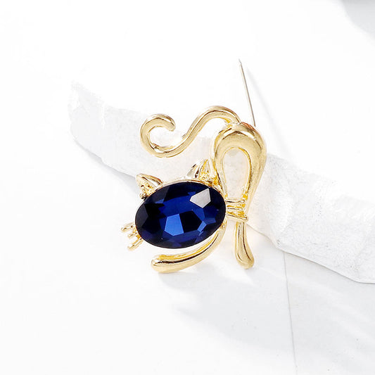 SISSLIA Luxury Brooches For Women Animal Cat Brooch Crystal Cat Jewelry And Enamel Pins Brooch Pins