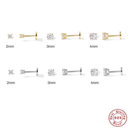 SISSLIA 14K Gold Plated Solid 925 Sterling Silver Post Cubic Zirconia Stud Flat Back Earrings For Women Cartilage Earring