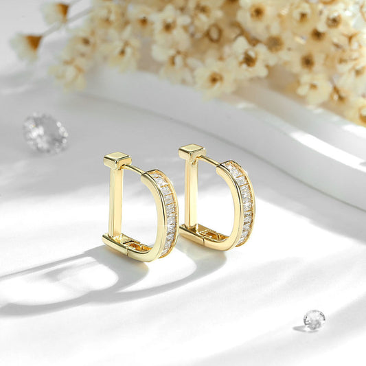 SISSLIA D-Shaped Women's Earrings Fashionable Micro-Paved Zircon Versatile Design Style 14K Gold Plated Earrings Jewelry