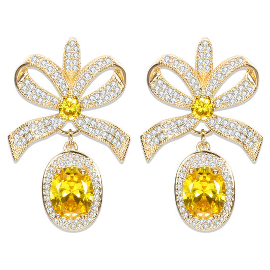 SISSLIA Fashion Design 925 Silver Needle Luxury 18K Gold Plated Elegant Bowknot Drop Earrings AAAAA Zircon Earrings Jewelry