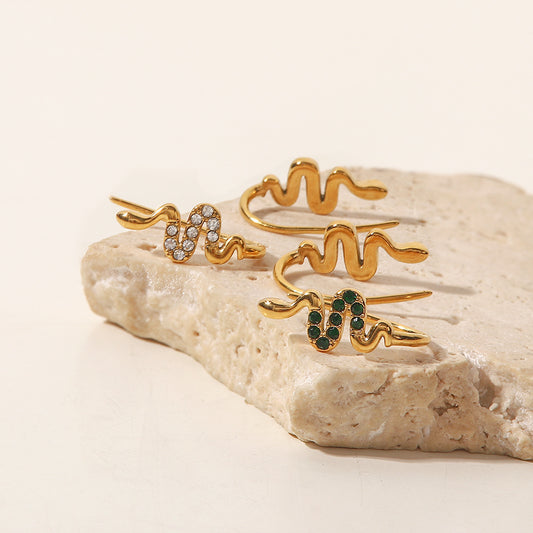 SISSLIA High Quality Serpentine Design with Natural Green Zircon Temperament All-Matching Earrings for Women