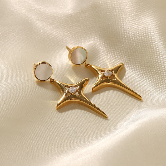 SISSLIA Titanium Steel 16K Gold Plated Star Zircon White Shell Cross Earrings for Women