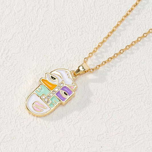 Fashion Style Dripping Oil Portrait Necklace Gold Plated Colorful CZ Cartoon Portrait Slippers Pendant Necklace