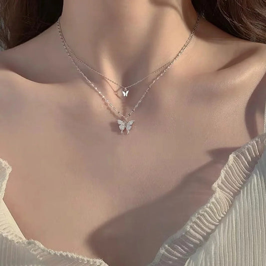 SISSLIA New Arrivals Zircon Butterfly Jewelry Chain Popular Multi-Layer Full Drill Necklace Collarbone Chain Necklace