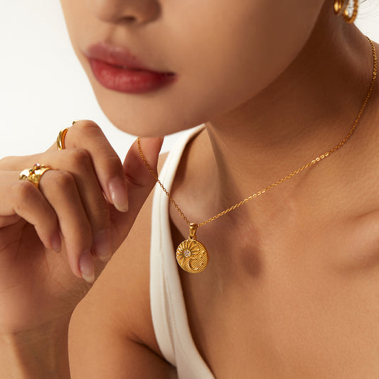 SISSLIA New Titanium Steel Pendant 18K Gold Natural Stone Cat's Eye Sun Pendant Colored Stone Necklace for Women