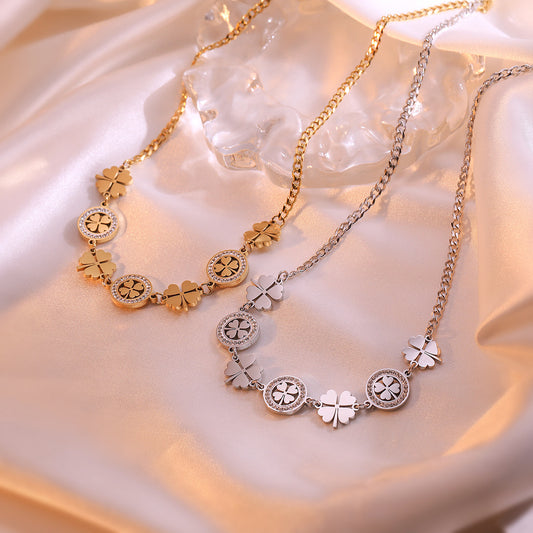 SISSLIA Well-Made Diamond Necklace Four-Leaf Clover Gold and Silver Zircon Simple Trend Necklace For Women