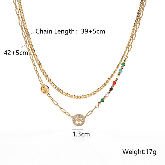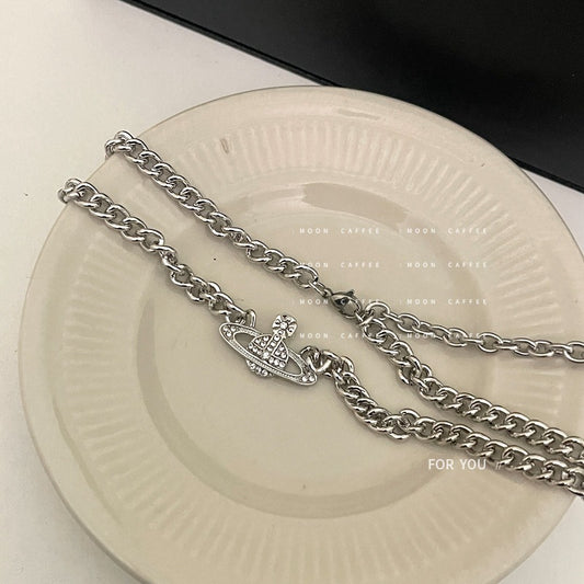 SISSLIA Silver Saturn Shape Inlaid Small Diamond Gold Plated Thick Chain Stack Necklace for Women