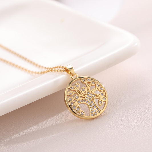 SISSLIA Fashion Jewelry Zircon Copper Plating Gold Titanium Steel Chain Tree of Life Pendant Necklace for Women