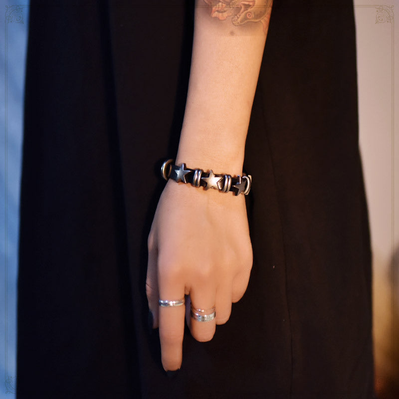 Sisslia 2024 High Quality Vintage Soft Leather Hip hop Retro Star Adjustable Alloy Bracelet