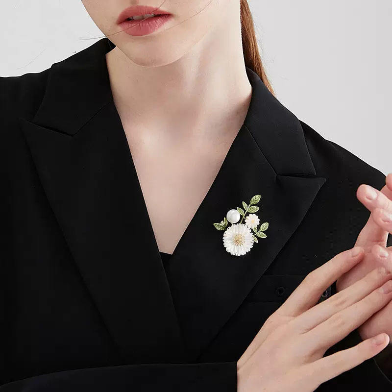 SISSLIA 2024 New High Quality Daisies Upscale Everything with Lovely Flowers White Shell Brooch for Women