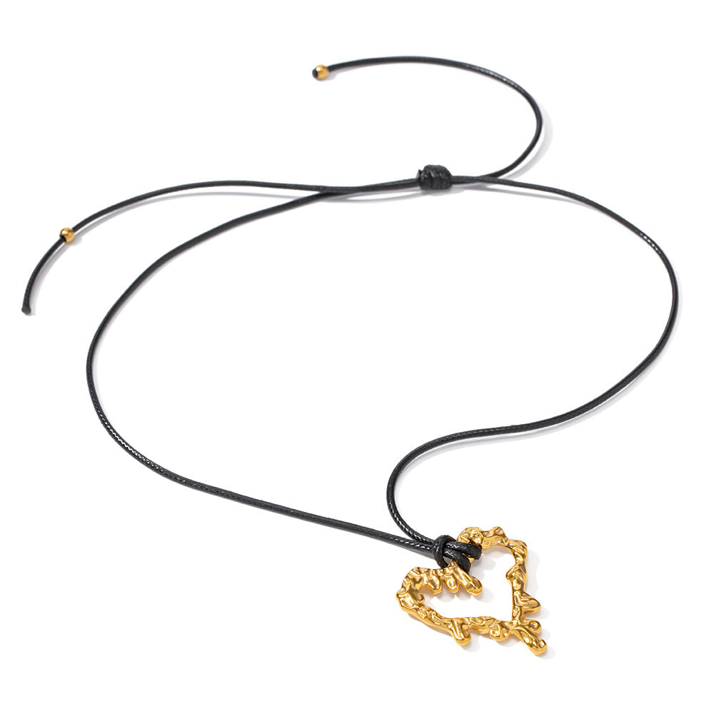 SISSLIA 2024 The Latest Fashion Stainless steel Black Wax Rope Lava Hollow Love Light Luxury Senior Necklace for Women
