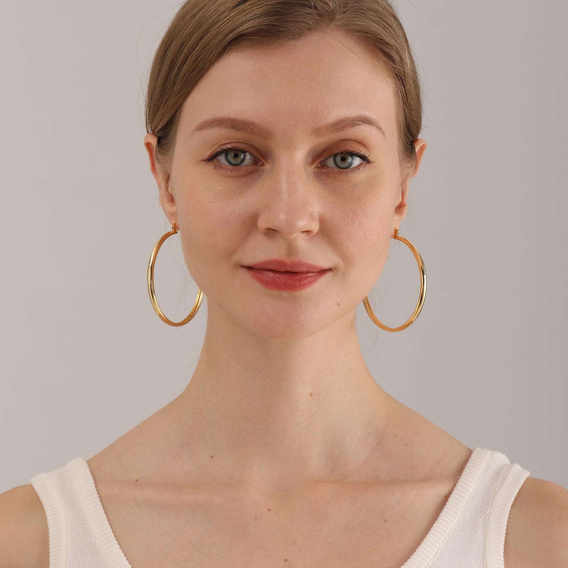 SISSLIA 4mm Thick Gold Chunky Earrings Steling Silver Post Hoops Earrings For Women Tube Hoops Earrings Thick Gold Hoop Earring