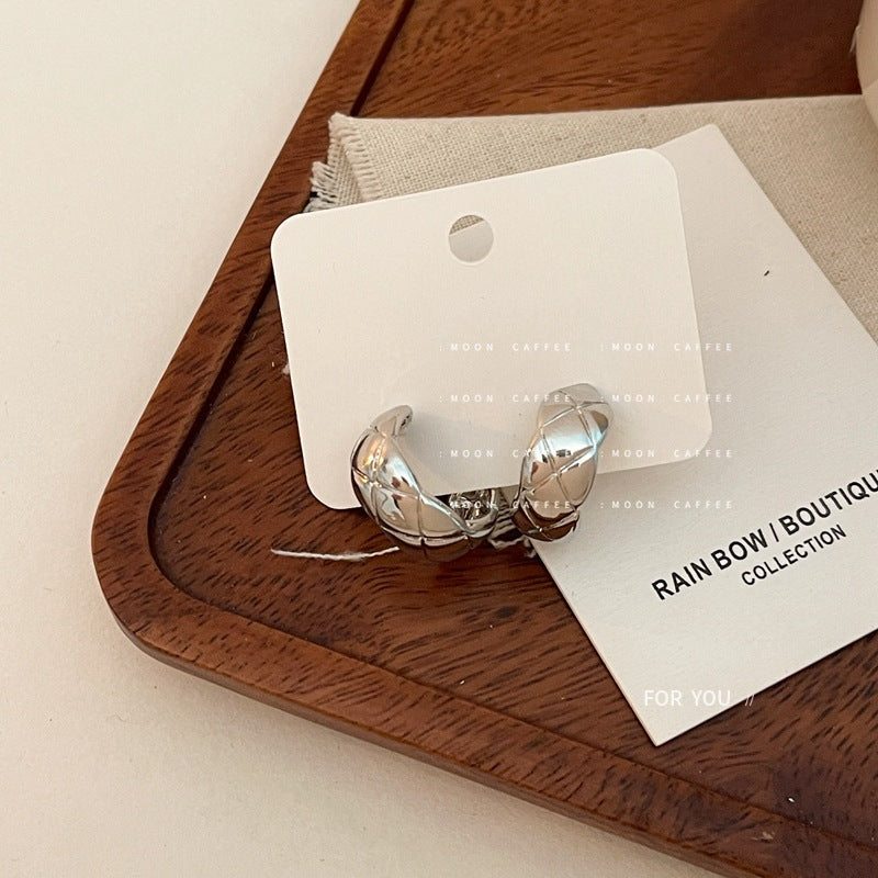 SIsslia 925 Silver Needle Metal Plaid Classic Style Retro C Cold Stud Earrings for Women
