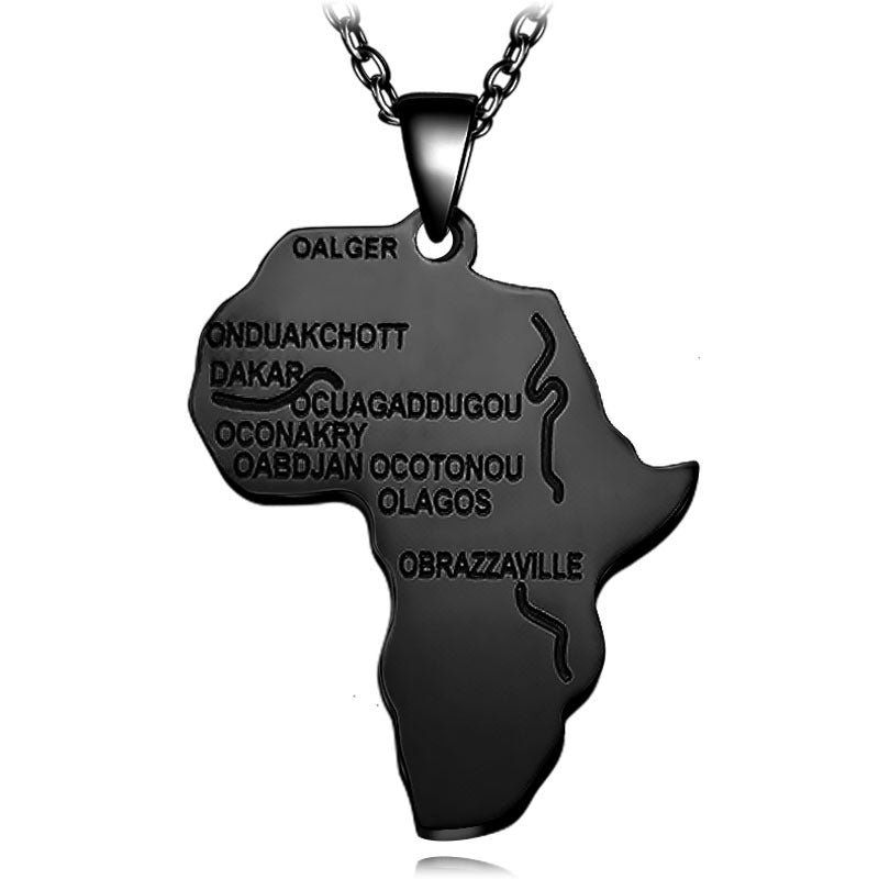 SISSLIA Africa Map Pendant Necklace Women Men Stainless Steel Long Chain Letter Necklace Jewelry