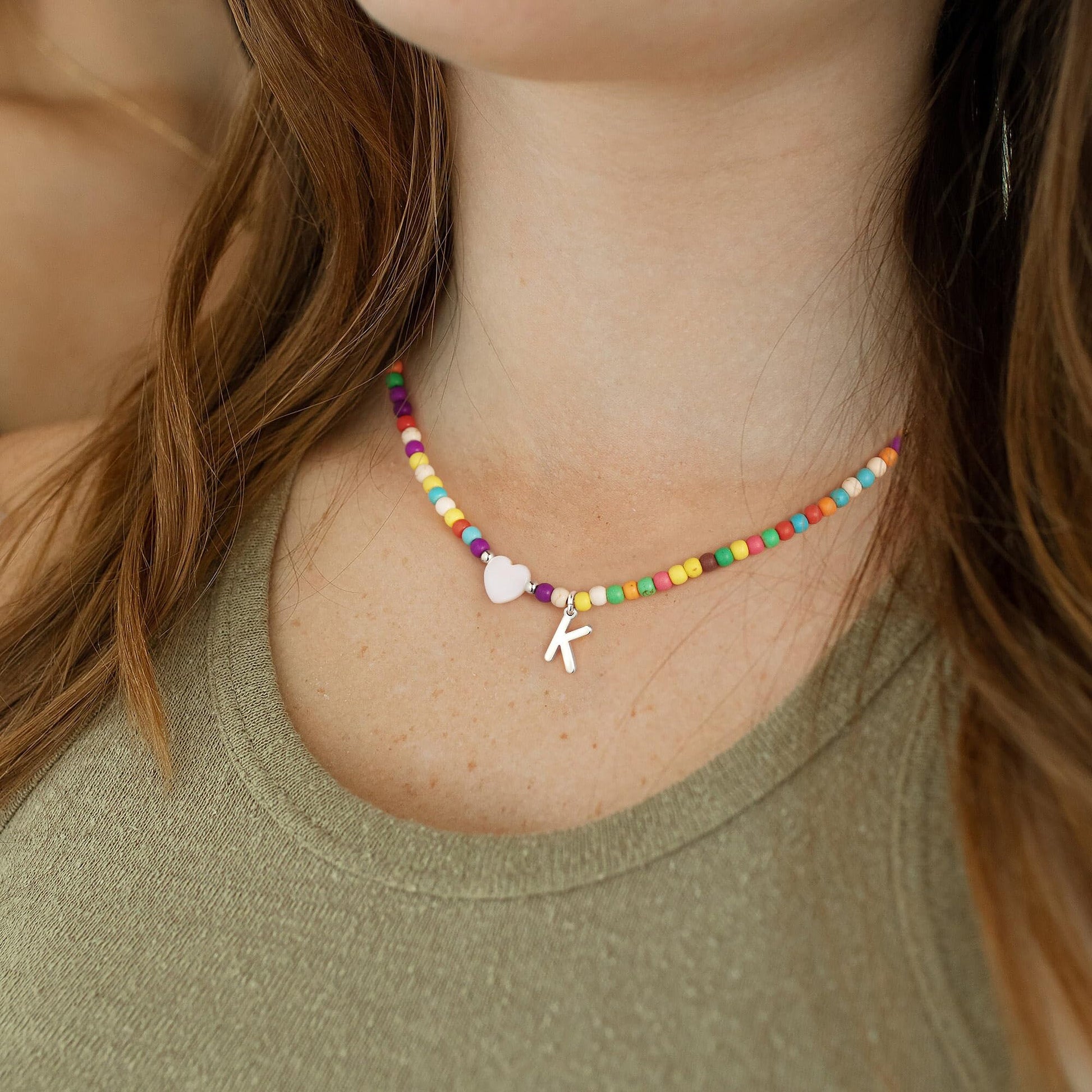 SISSLIA Colorful Initial Cute Necklaces for Girls Trendy Beaded Choker Necklace for Women Teen Girl Handmade Letter Choker Jewelry
