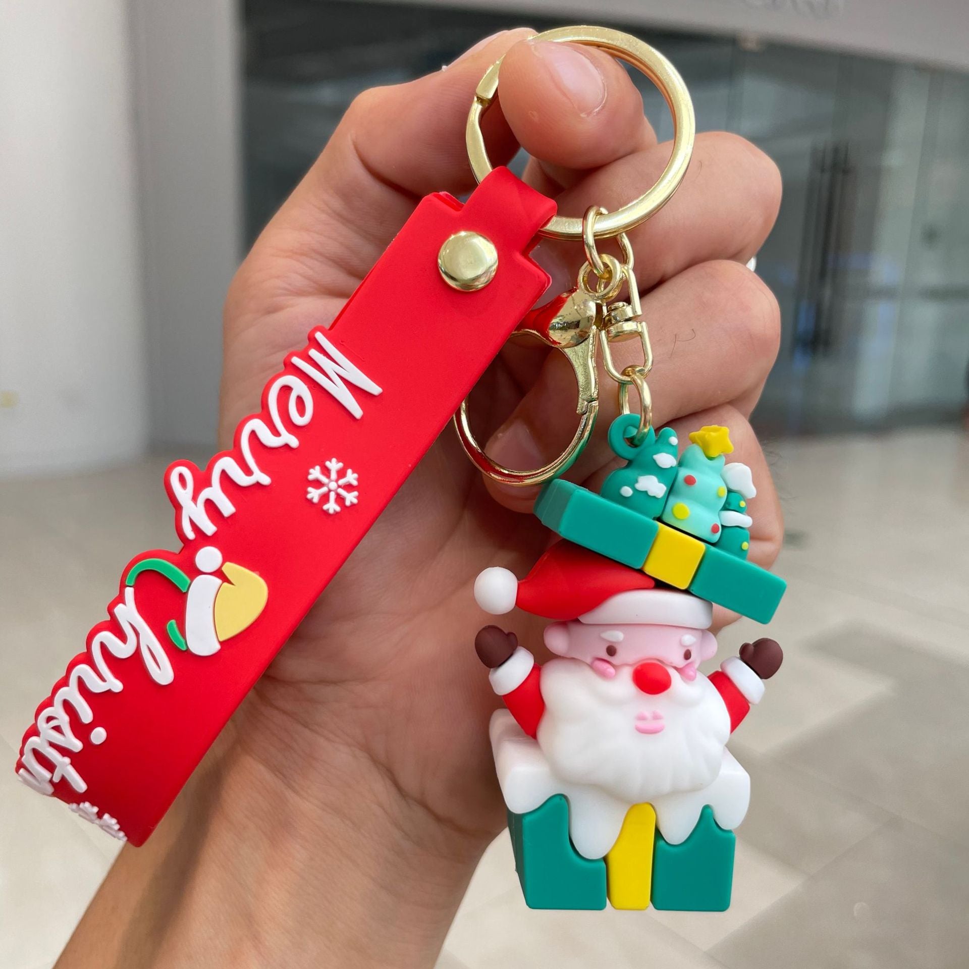 SISSLIA Creative 3D Christmas Doll Keychain Cartoon Santa Claus Snowman Elk Tree Pendant With Key Rings Kids Backpack Accessory