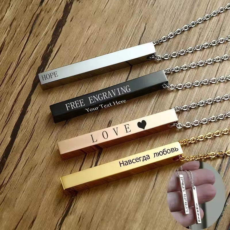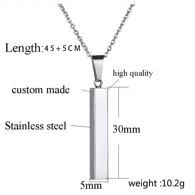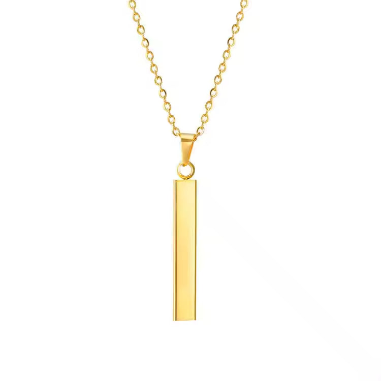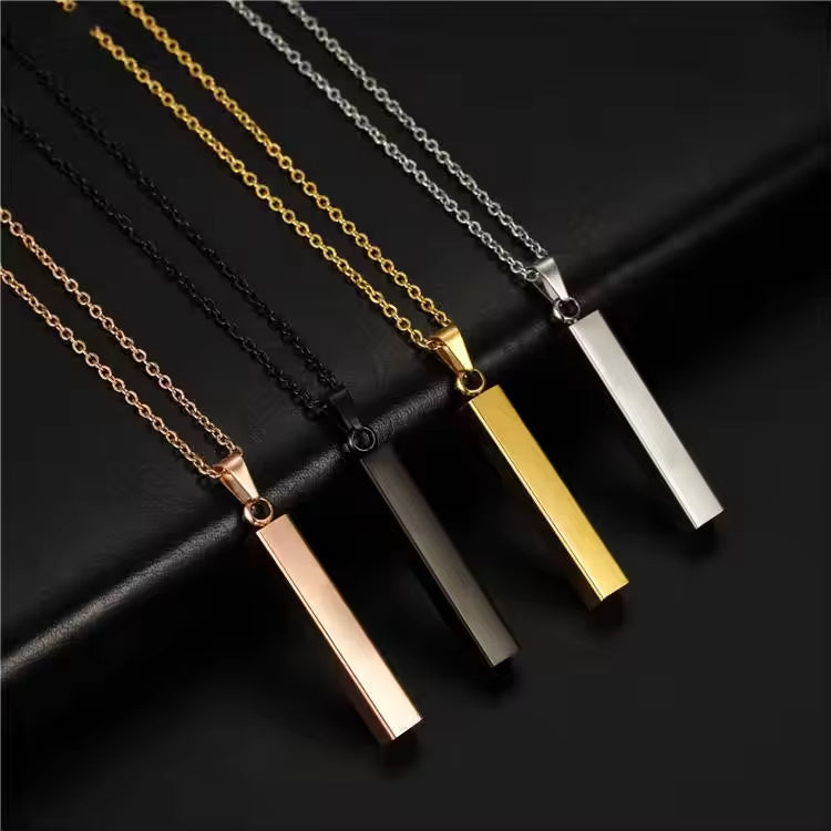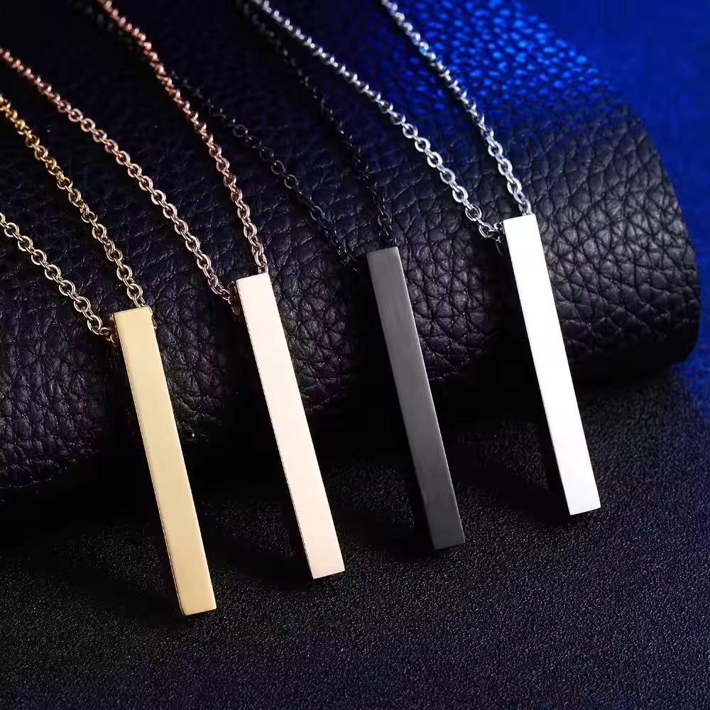 SISSLIA Customized Logo Rectangle 3D Bar Pendant Necklace Men Stainless Steel 18k Gold Necklace Jewelry