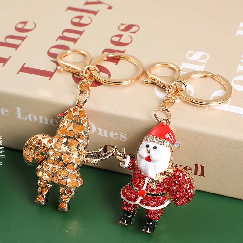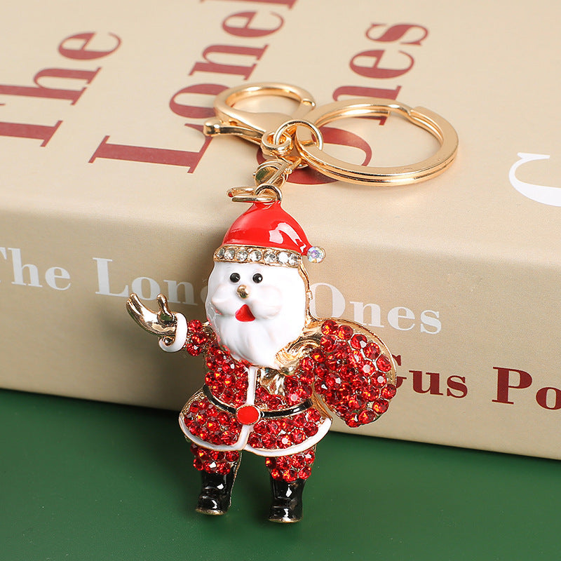 SISSLIA Cute Santa Claus Rhinestone Key Rings for Women Men Alloy Gold Color Father Christmas Halloween Jewelry Gifts Bag
