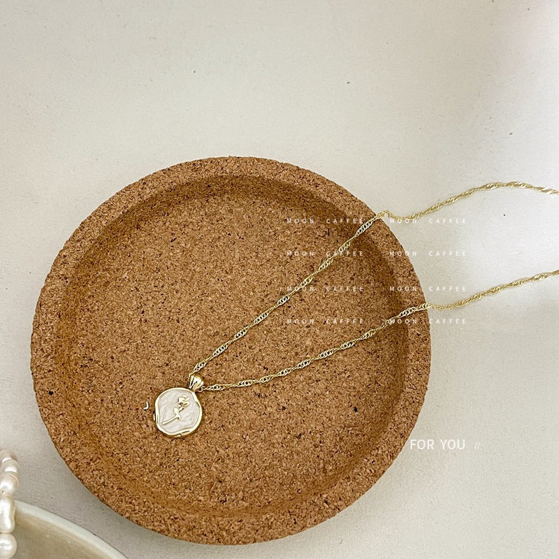SISSLIA Elegant Pearl White Enamel Vintage Rose Gold Coin Freshwater Necklace for Women