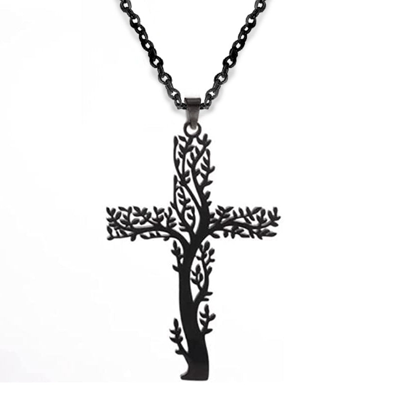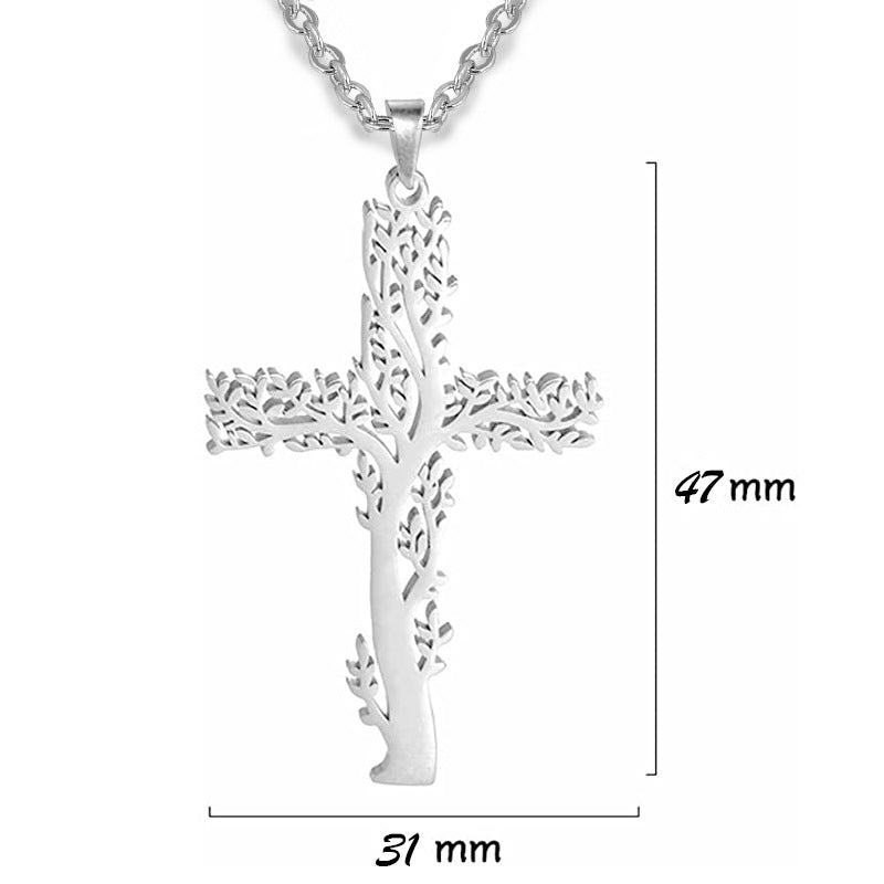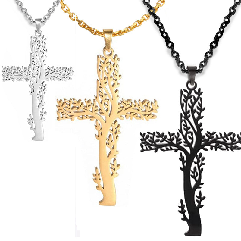 SISSLIA Fashion Creative Cross Necklace Stainless Steel For Women Choker Branches Tree of Life Design Pendant Necklace Jewelry