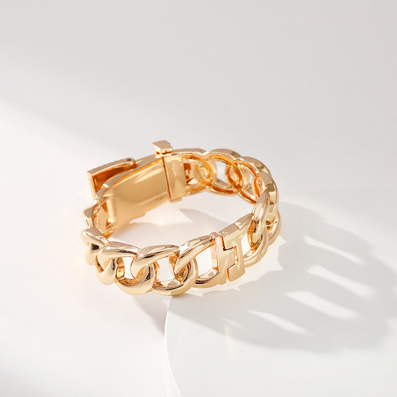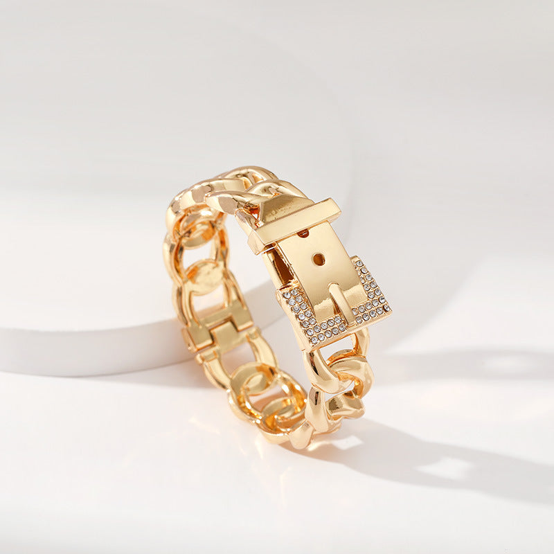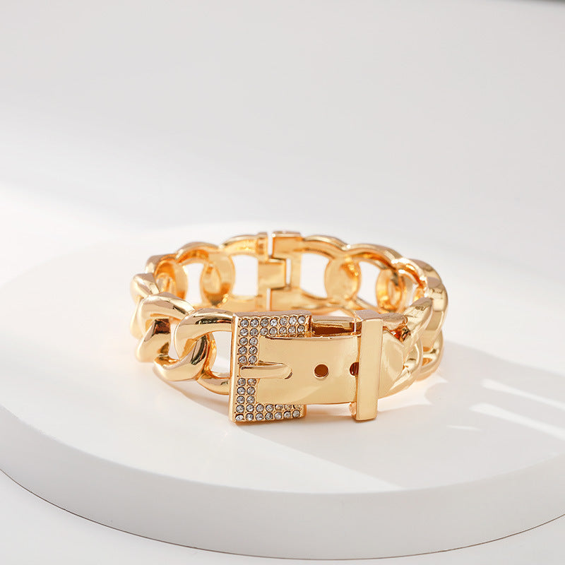 Sisslia Fashion Cuff Bracelet Wide Crystals Belt Buckle Cuban Curb Open Link Chain Bangle Bracelet For Women