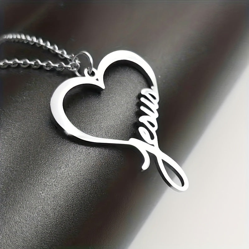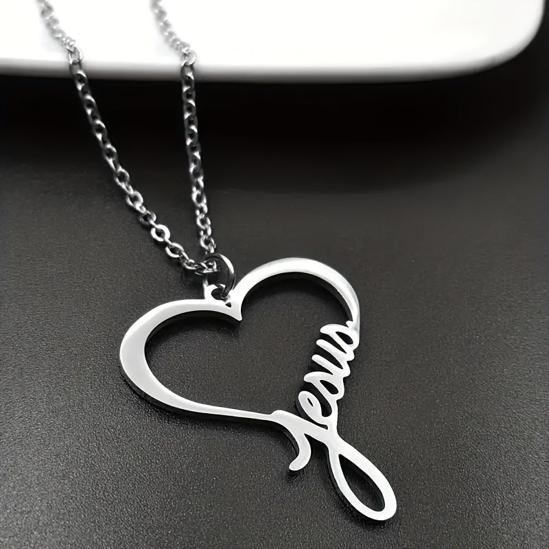 SISSLIA Fashion Stainless Steel Silver Color Chain Letter Hollow Cross Pendant Necklaces For Women