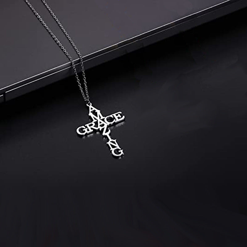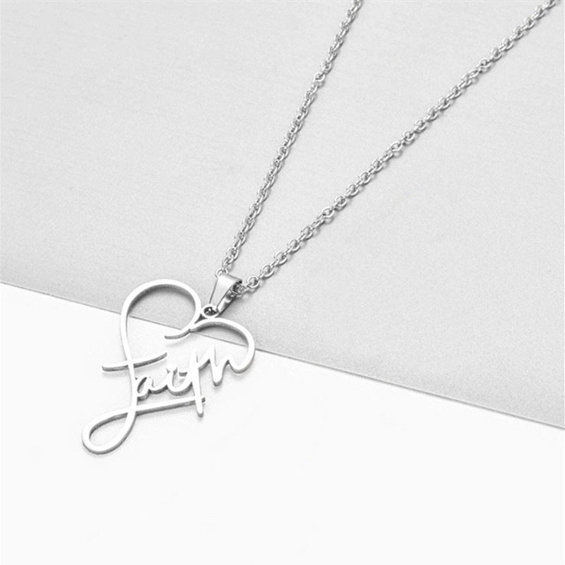 SISSLIA Fashion Stainless Steel Silver Color Chain Letter Hollow Cross Pendant Necklaces For Women