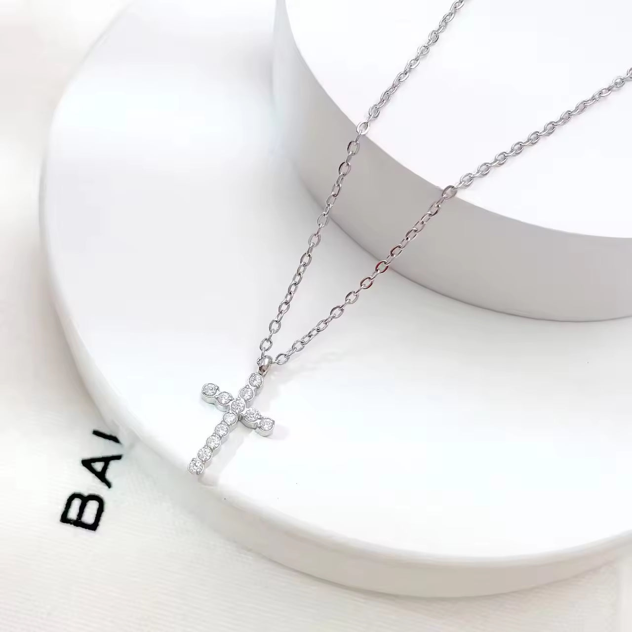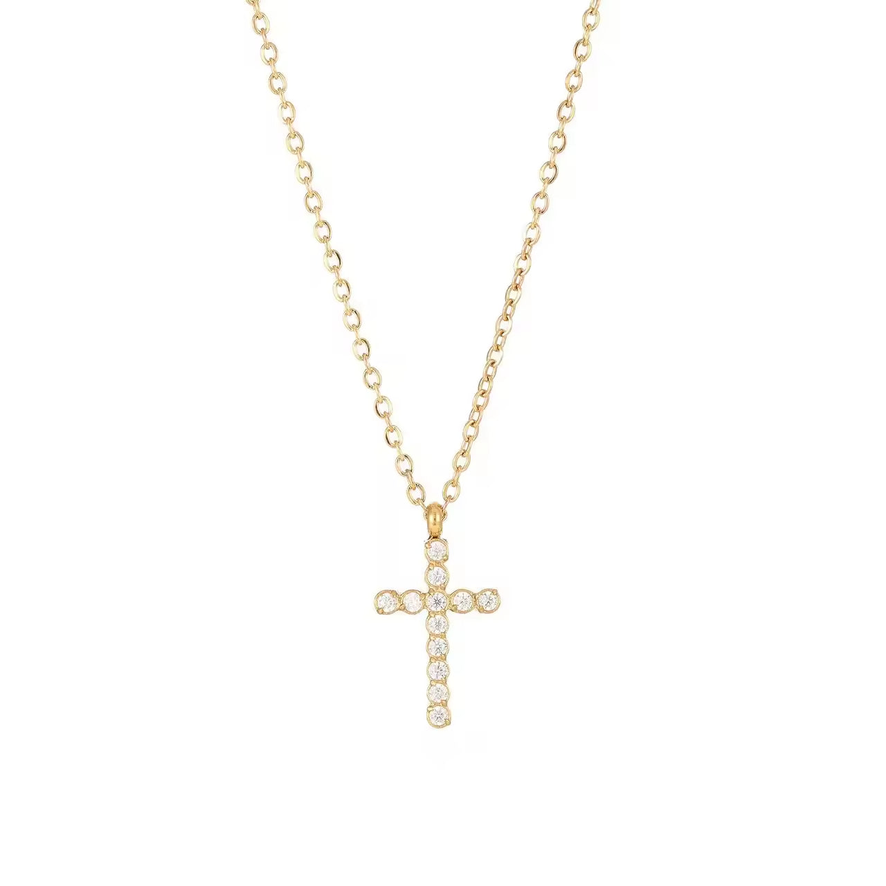 SISSLIA Fashion Stainless Steel Zircon Cross 18K Gold Plated Pendant Necklaces For Women Accessory