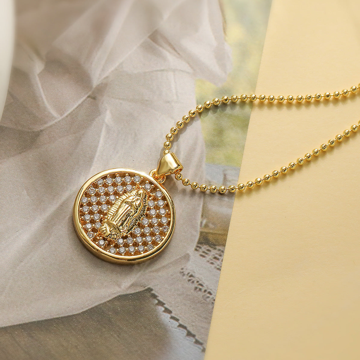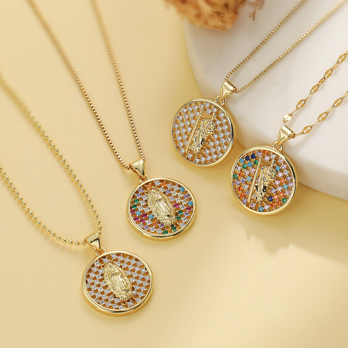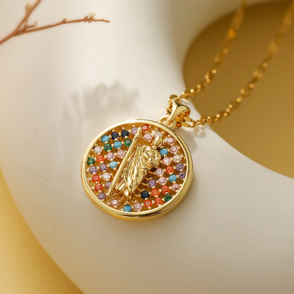 SISSLIA Fashion Wholesale 18K Gold Plated Copper Alloy Jewelry Round Multicolored Diamond Pendant Necklace for Women