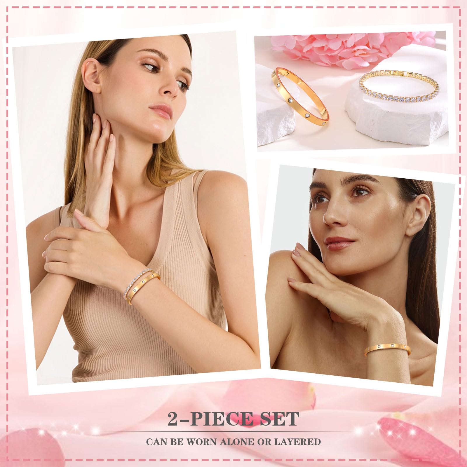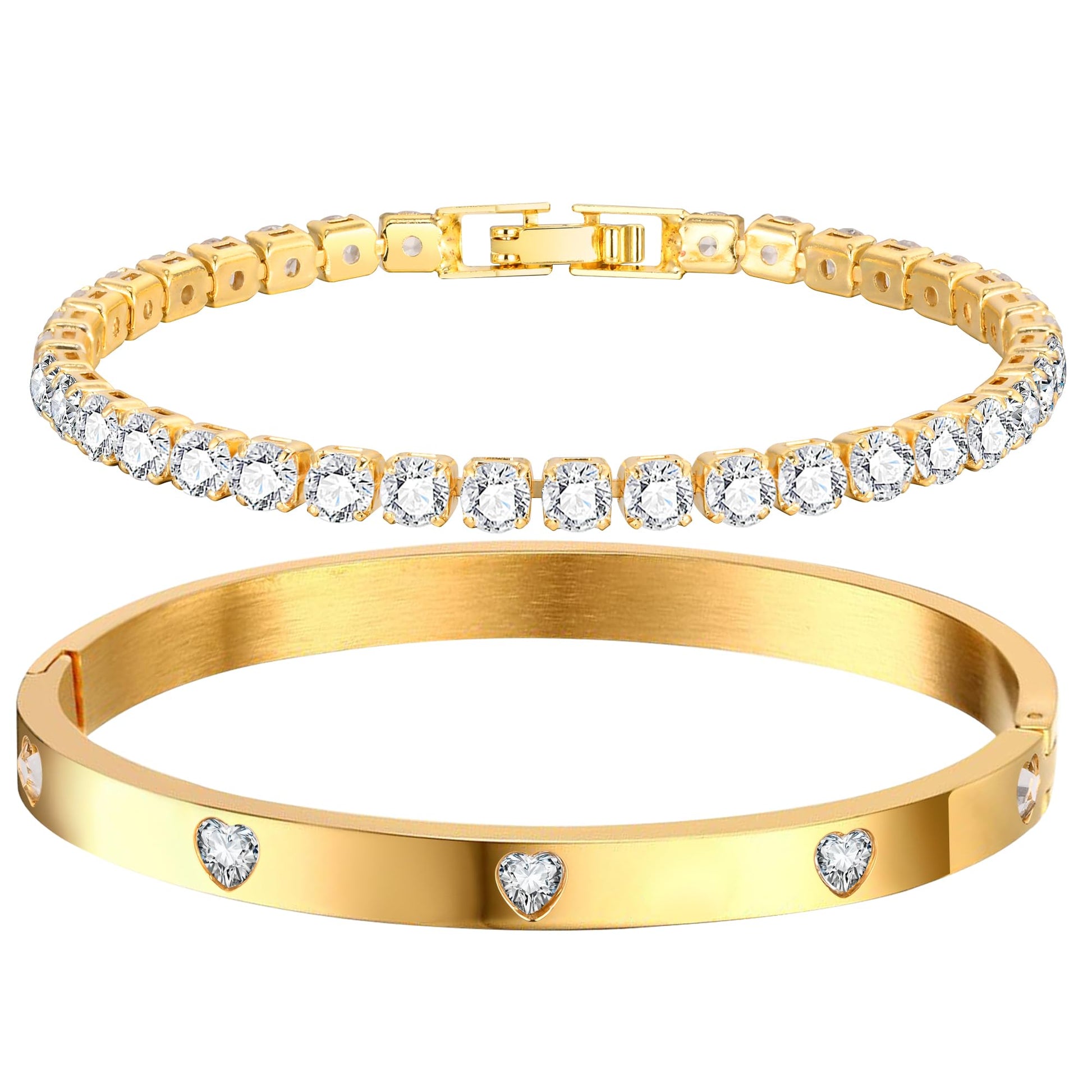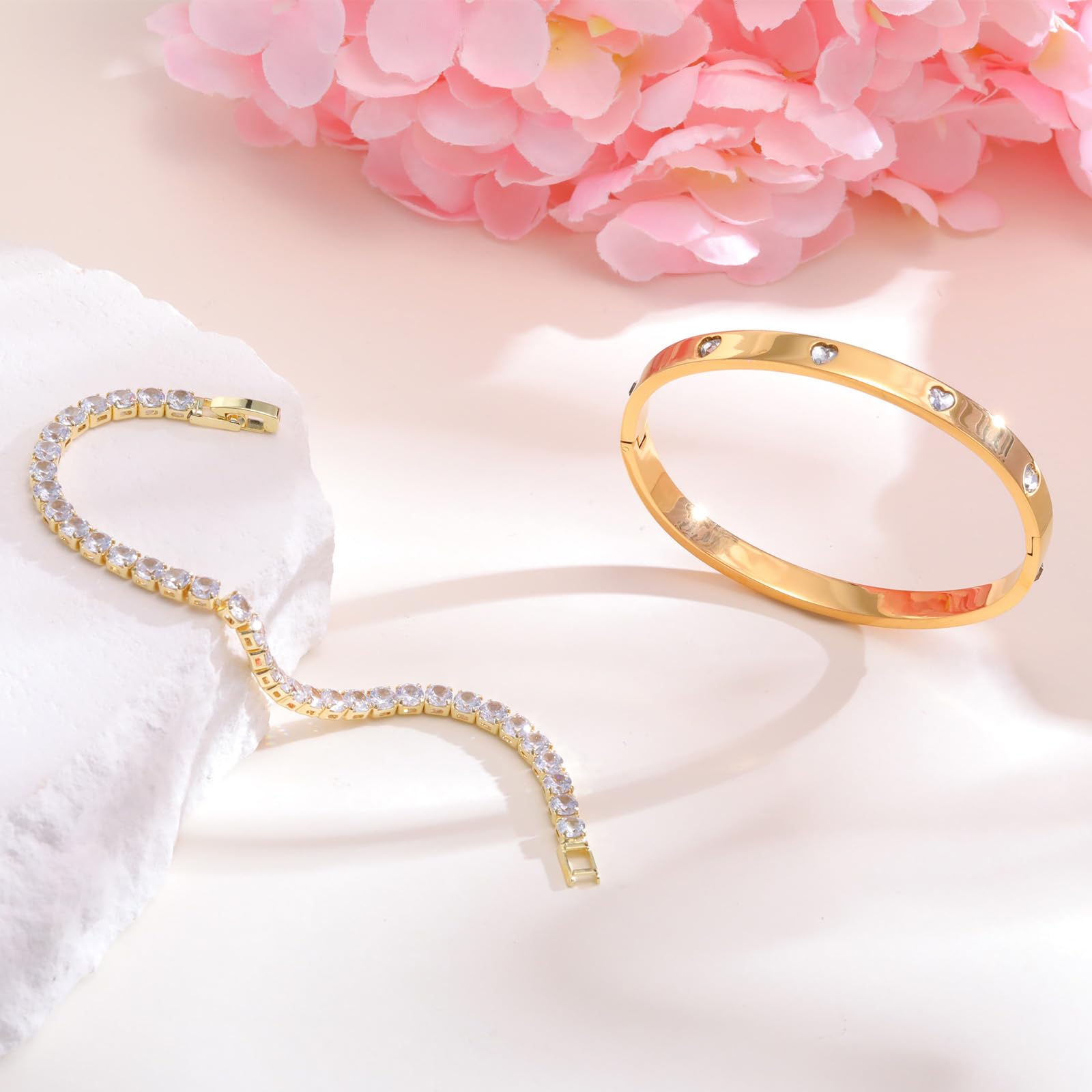 SISSLIA Gold Color Bracelets for Women Tennis Bracelet Man Couple Matching Bangles Luxury Fashion Jewelry Accessory