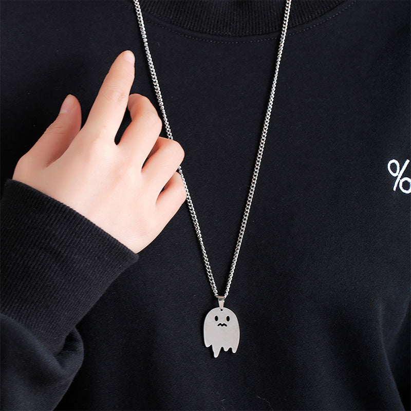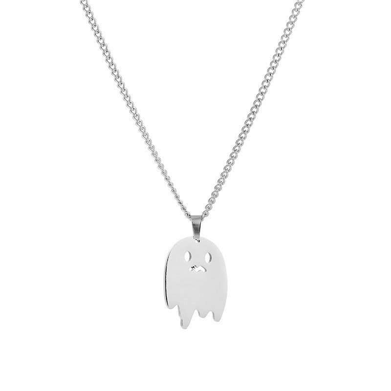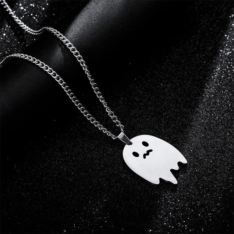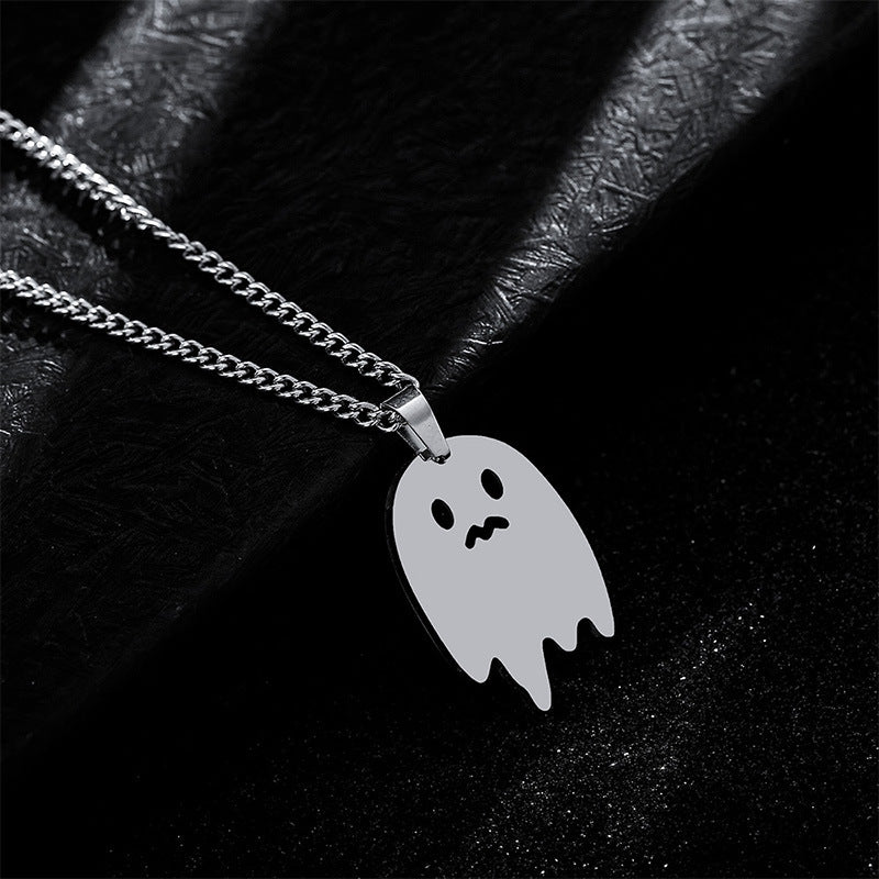 SISSLIA Hot Selling Stainless Steel Hip Hop Personality Cool Cute Ghost Necklace for Men Halloween Necklace Gift