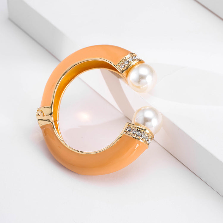 Sisslia New Design High Quality Golden Color Alloy Cuff Charm ABS Pearls Diamond Bangle For Women
