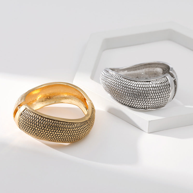 Sisslia New Design High Quality Women's Jewelry Latest Retro Fashion Irregular Shape Stone Pattern Oversize Punk Bracelets