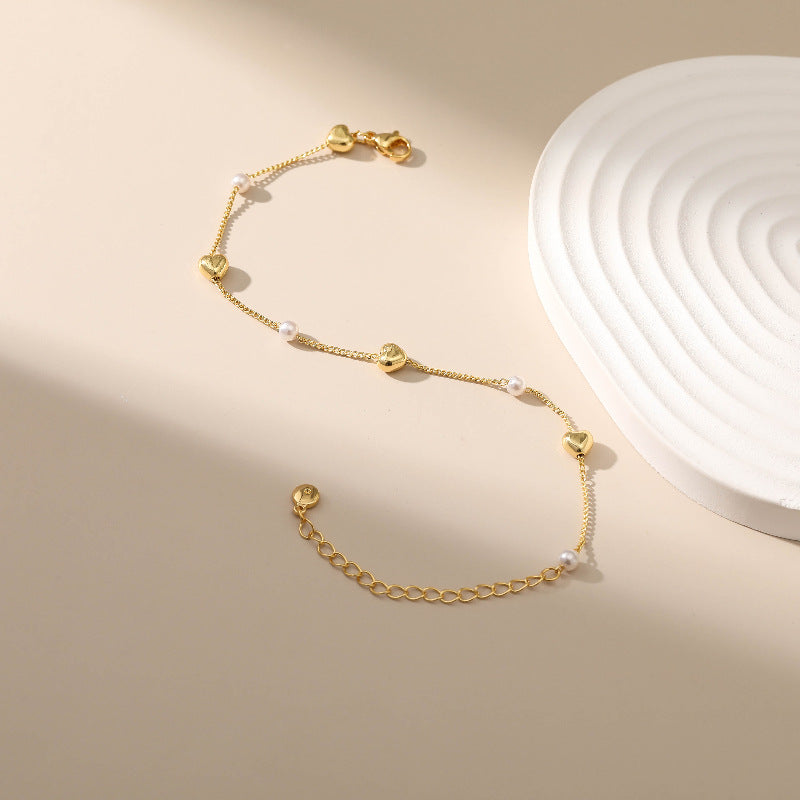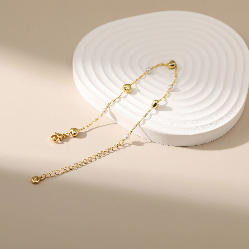 SISSLIA New Fashion 18k Gold Plated Pearl Chain Love Heart Bracelet Romantic Wedding Engagement Jewelry