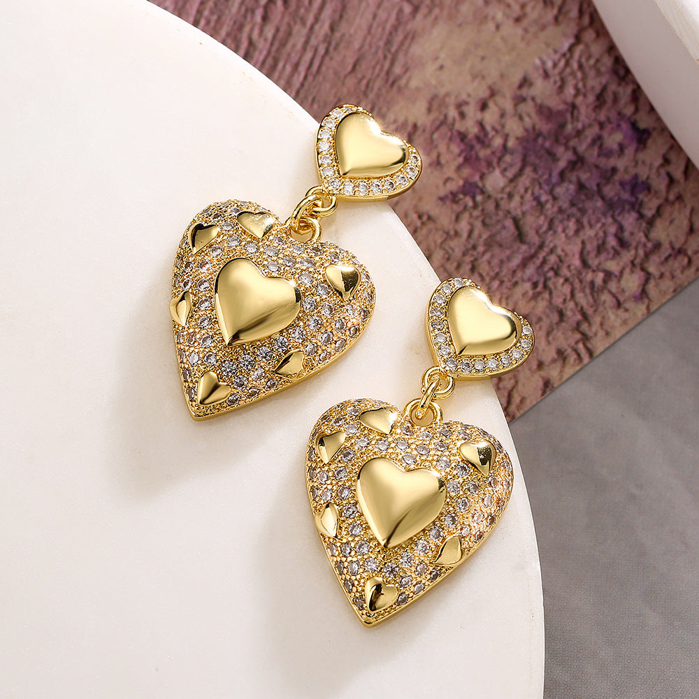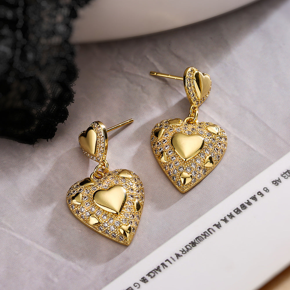 Sisslia New Luxury Jewelry Fashion Zirconia 925 Silver Needles Heart Crystal Drop Earrings
