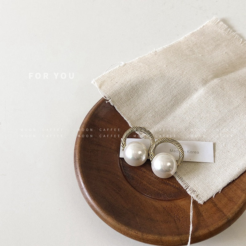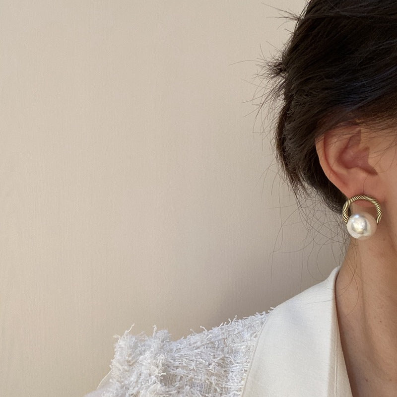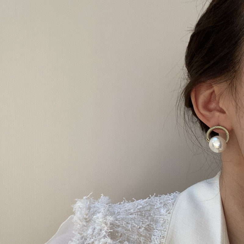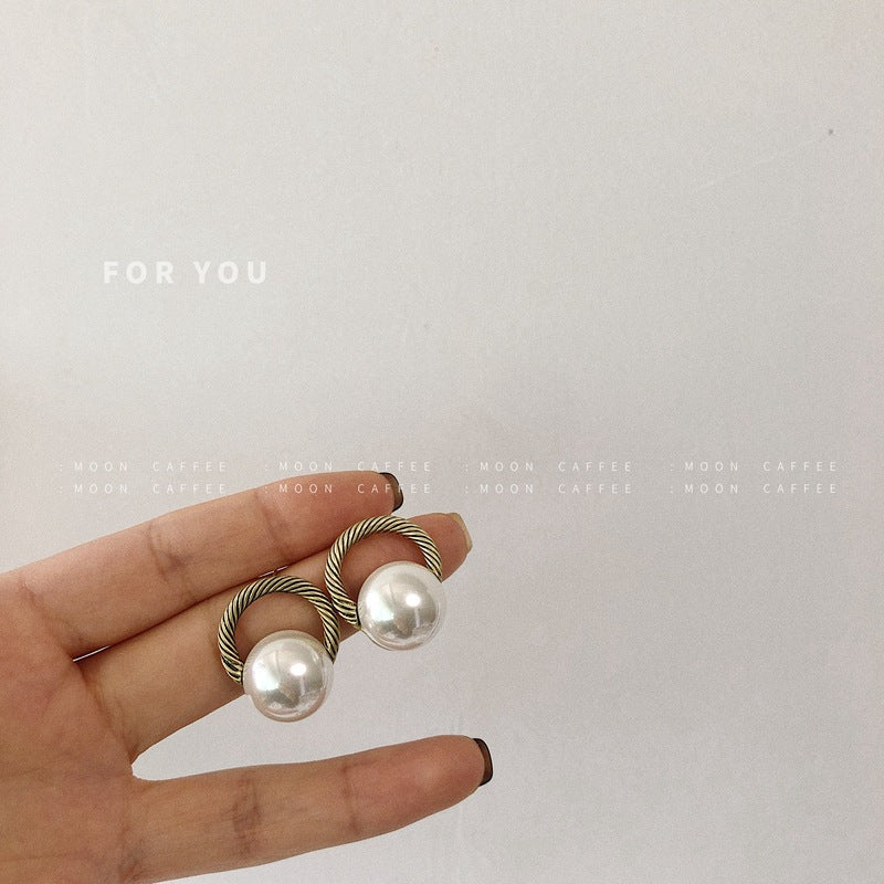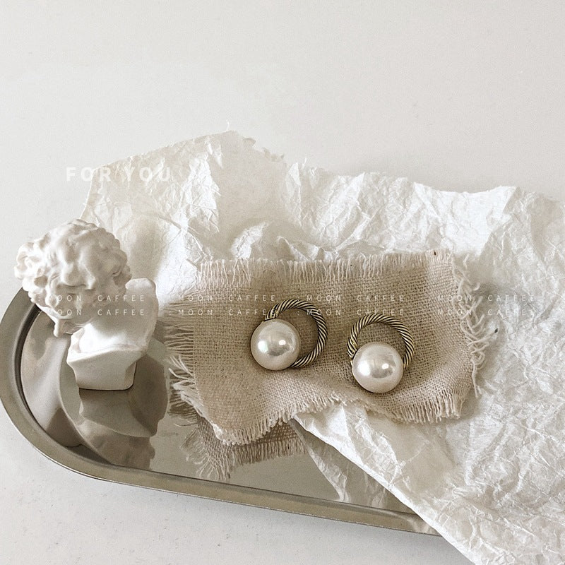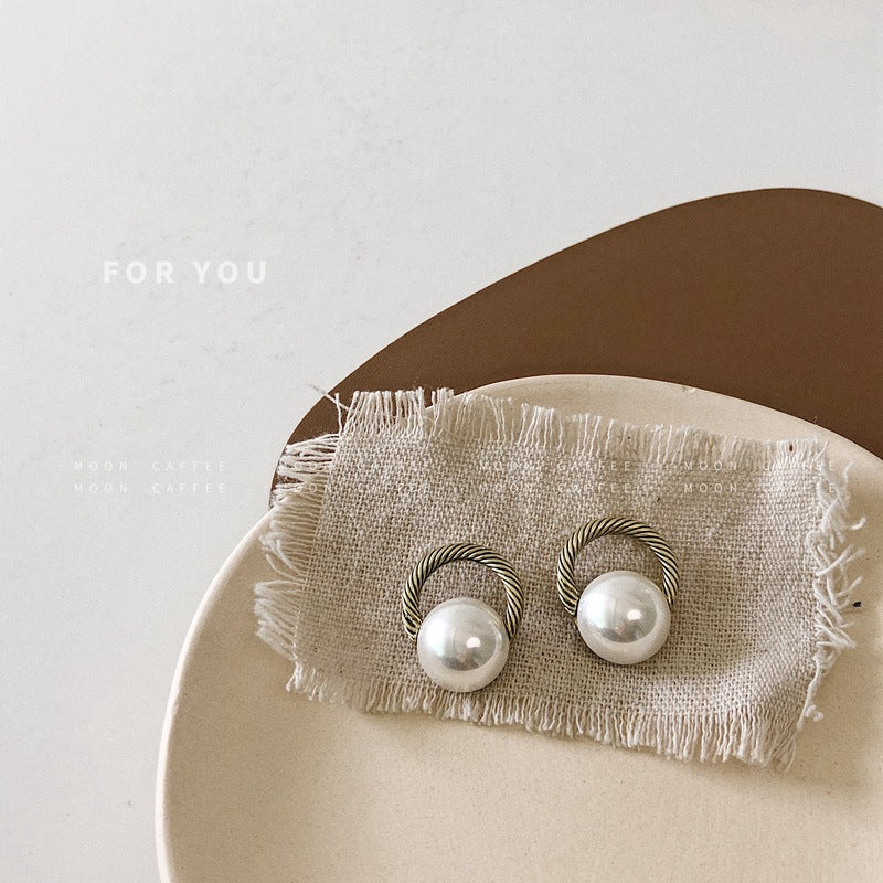 SIsslia S925 Silver Needle Round Large Pearl Retro Everything Temperament Personality Stud Earrings for Women