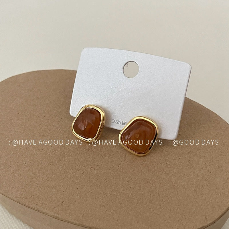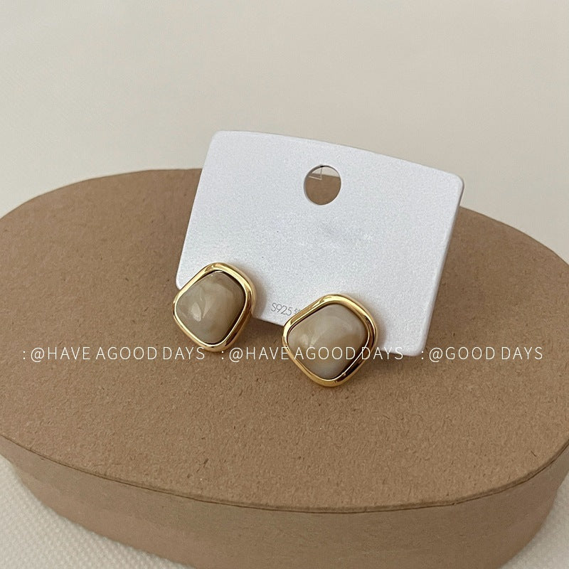 SISSLIA Simple Irregular Geometry Natural Stone Light Luxury 925 Silver Needle All Match Niche for Women