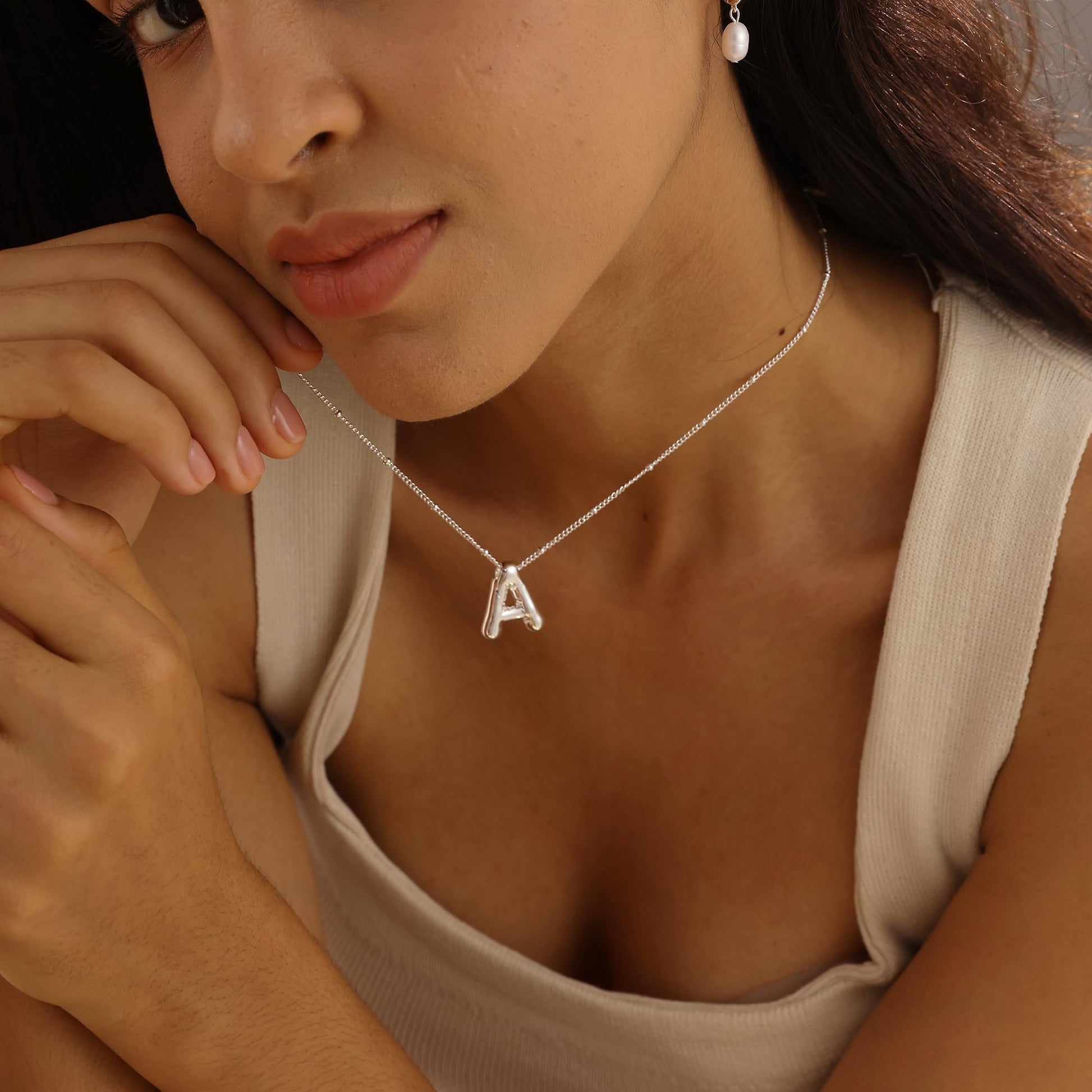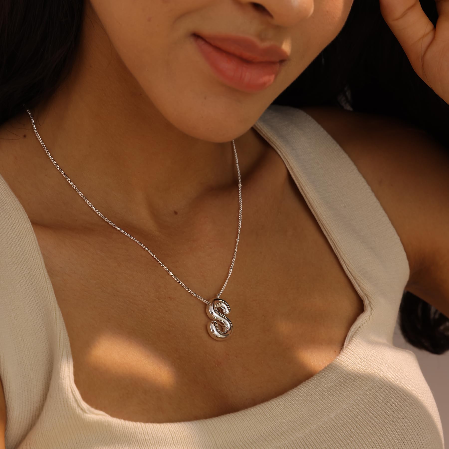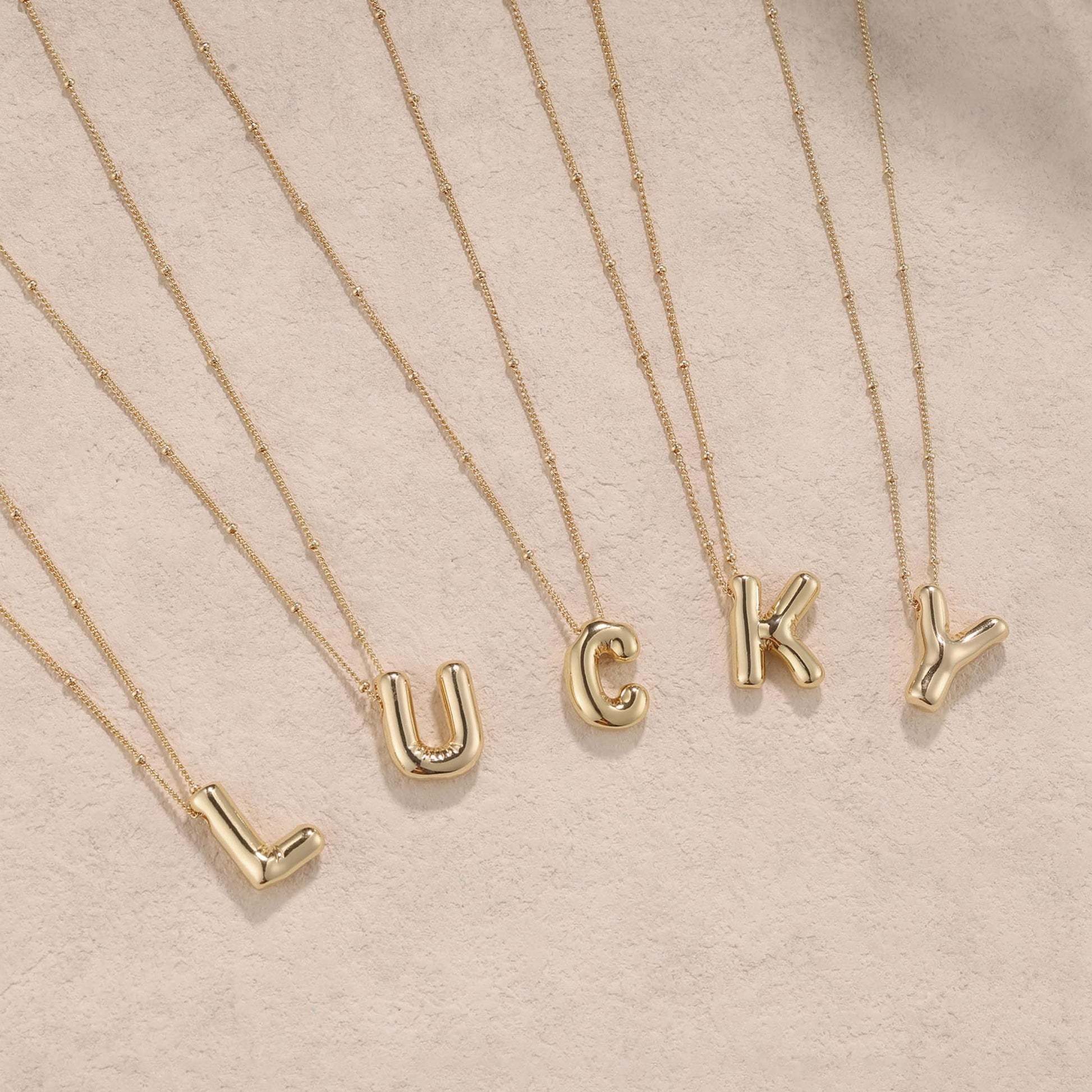 SISSLIA Stainless Steel Bubble letter Initial Pendant Chunky Women Personality Jewelry Gold Plated Balloon 26 Letter Necklaces