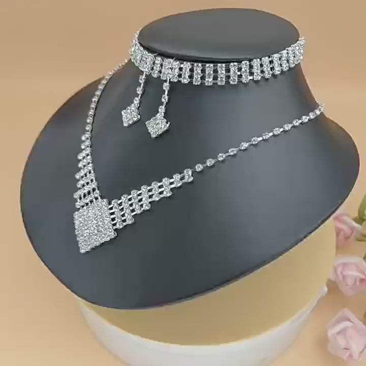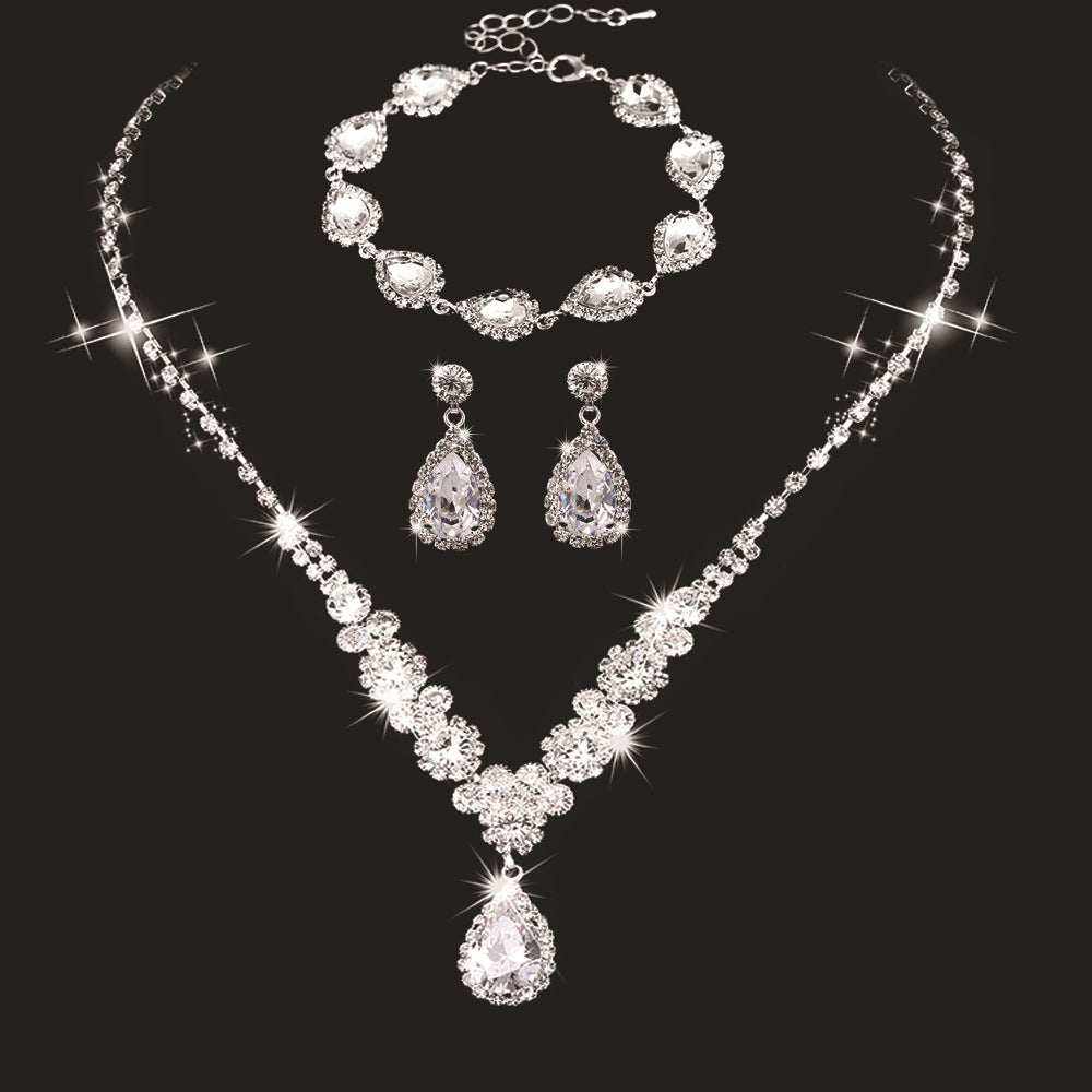 SISSLIA Trendy Rhinestone Water Drop Pendant Necklace Earrings Needle Jewelry Sets 925 Sterling Silver Set For Women