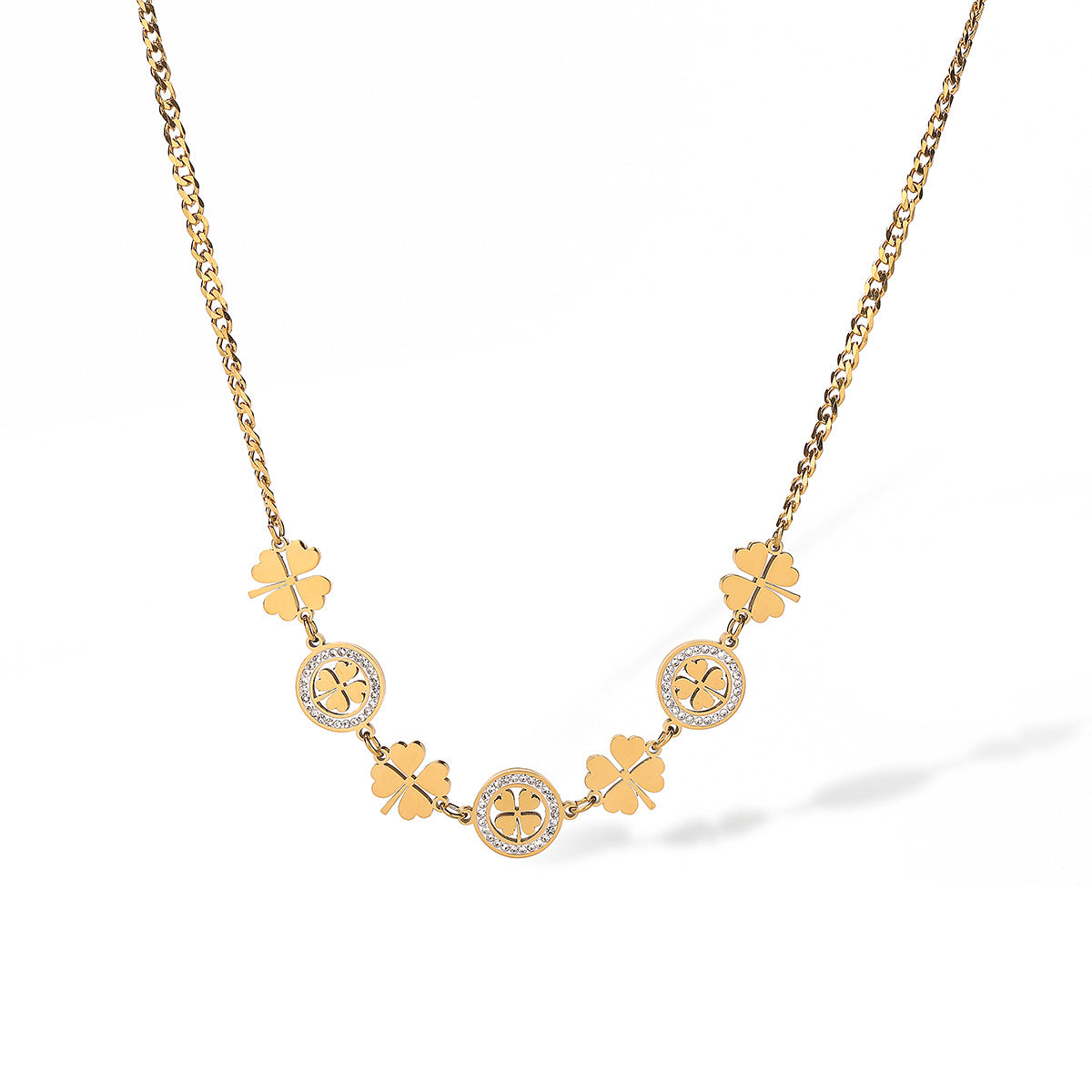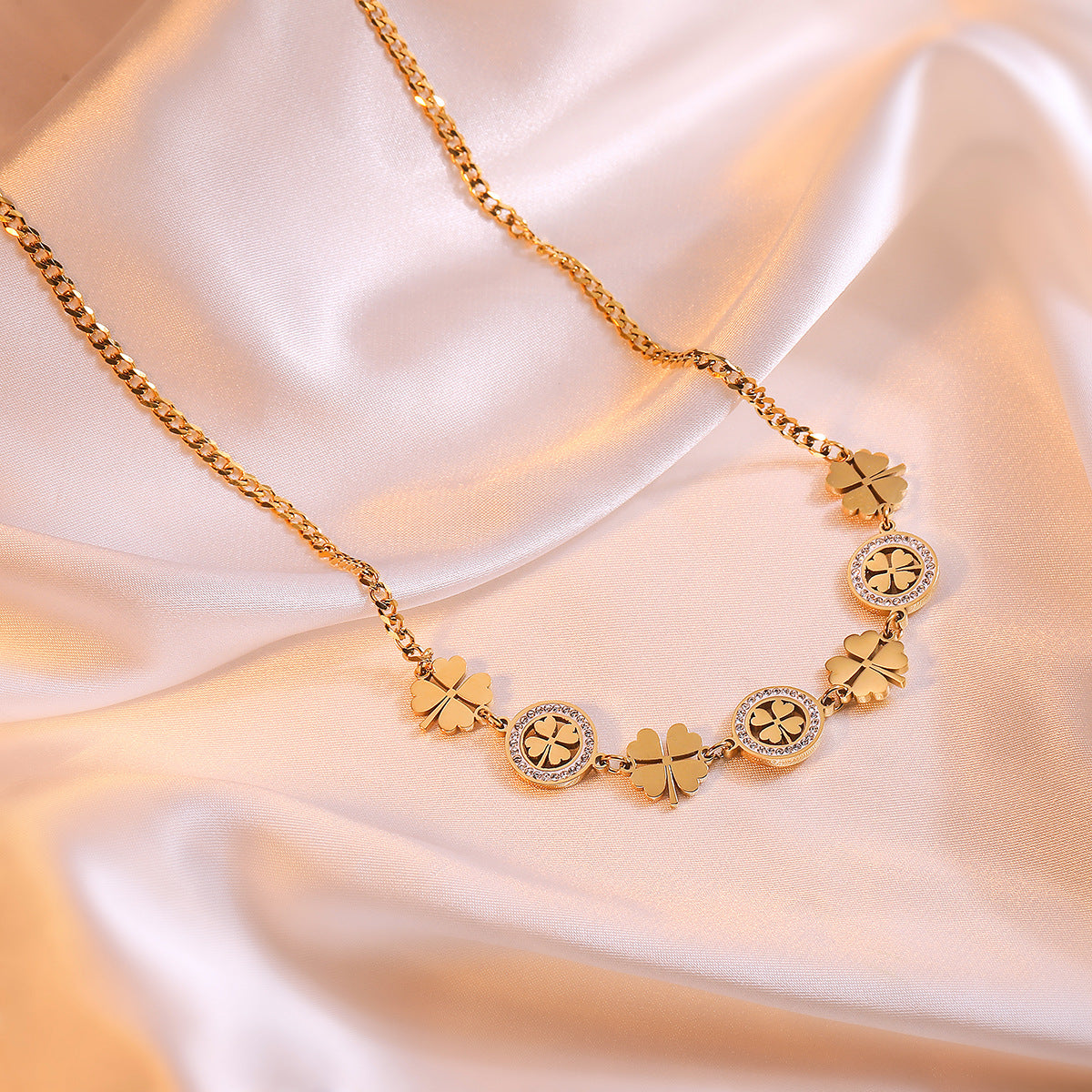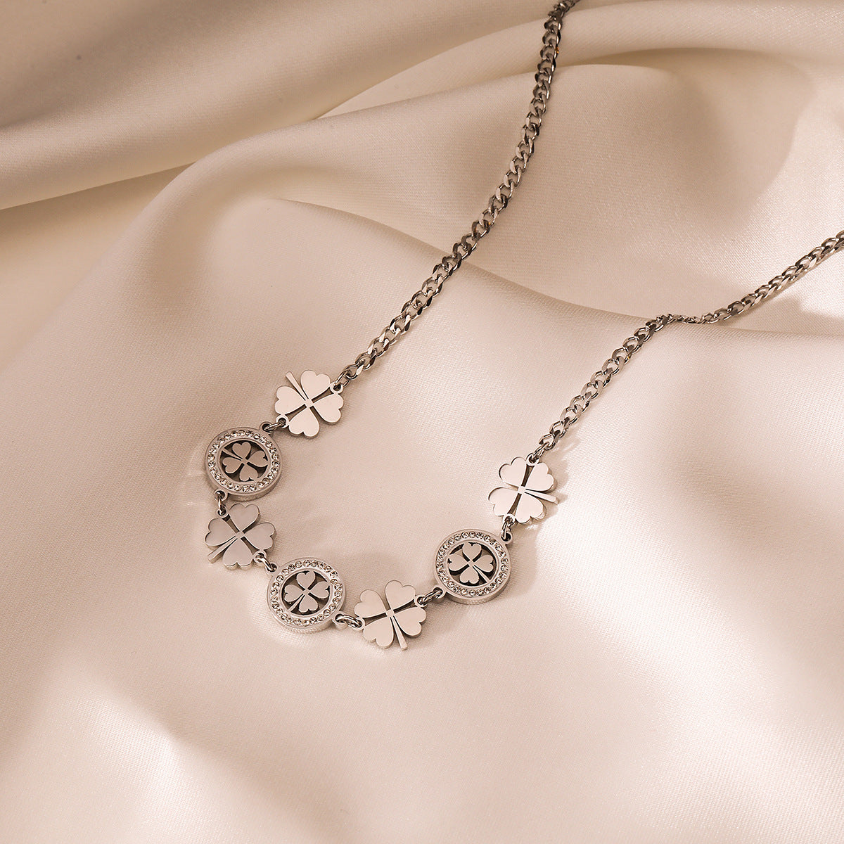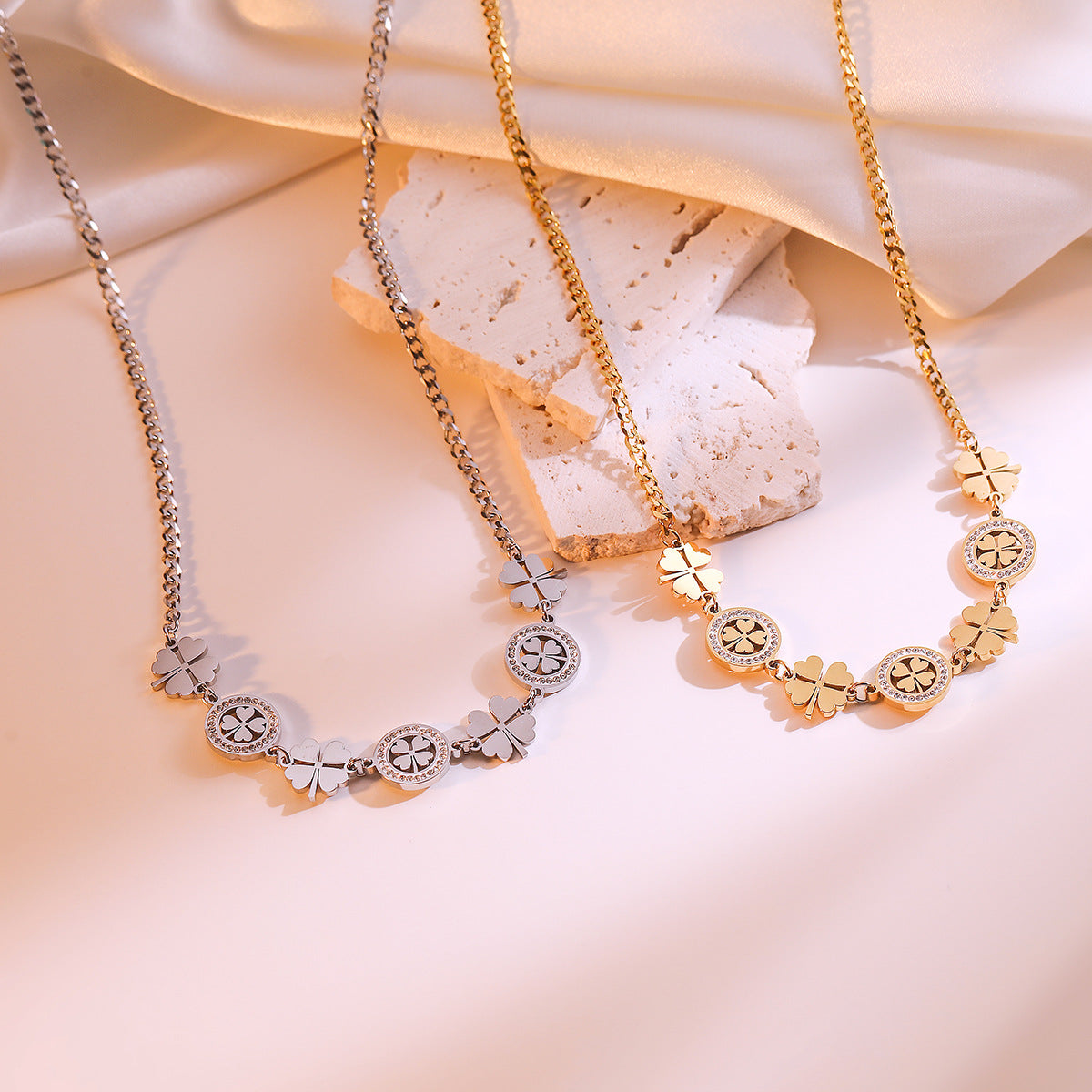 SISSLIA Well-Made Diamond Necklace Four-Leaf Clover Gold and Silver Zircon Simple Trend Necklace For Women