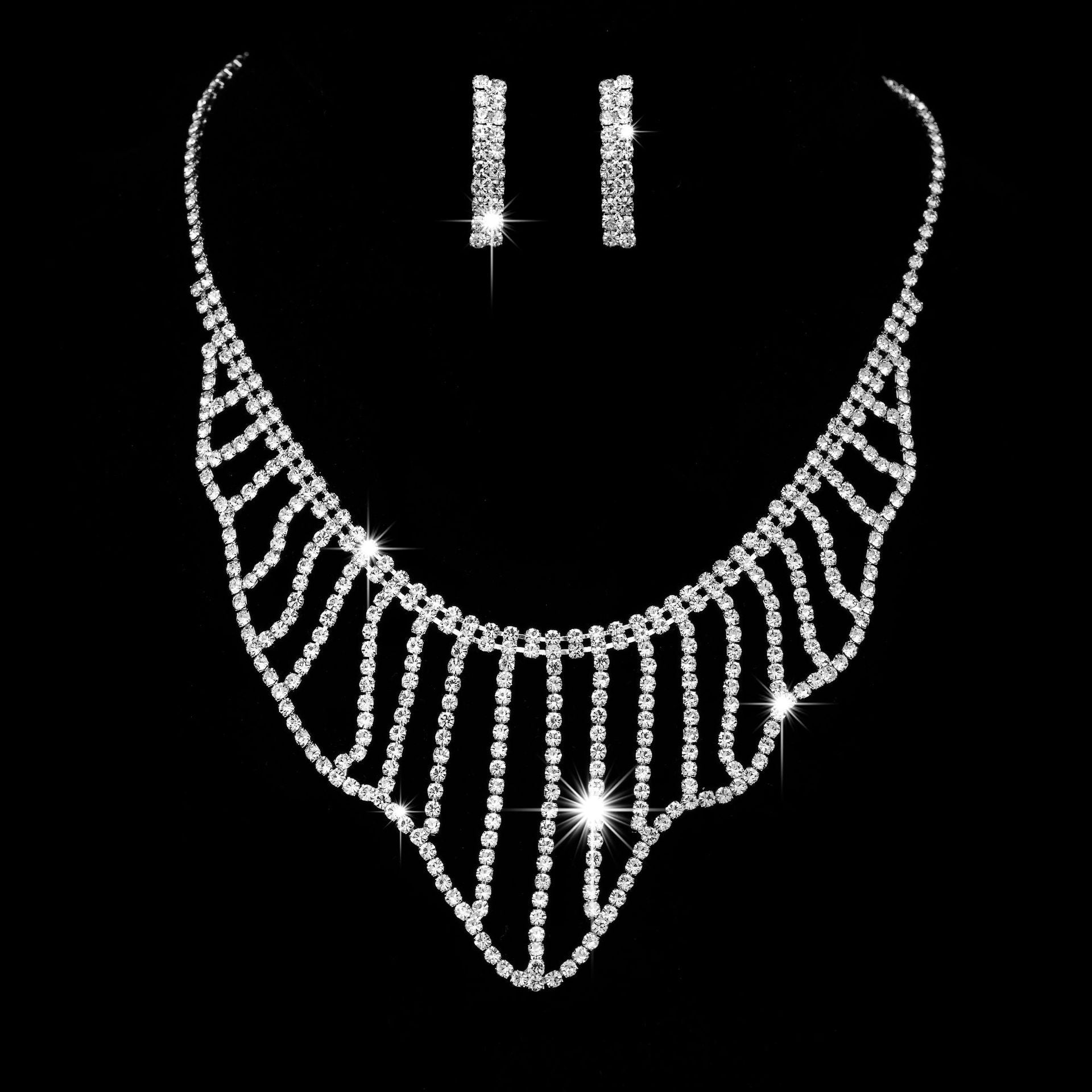 SISSLIA Wholesale Trendy Rhinestone Water Drop Pendant Necklace Earrings S925 Needle Jewelry Sets For Women