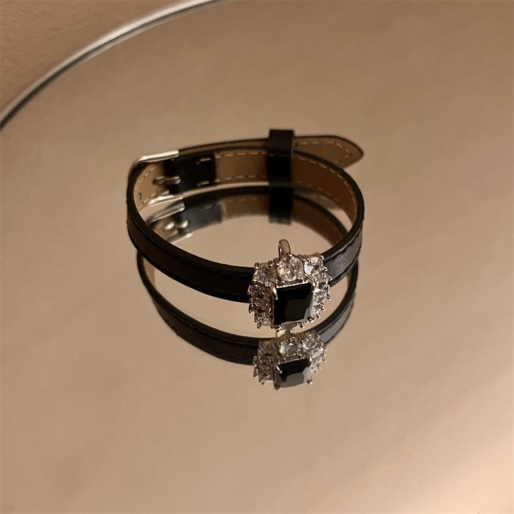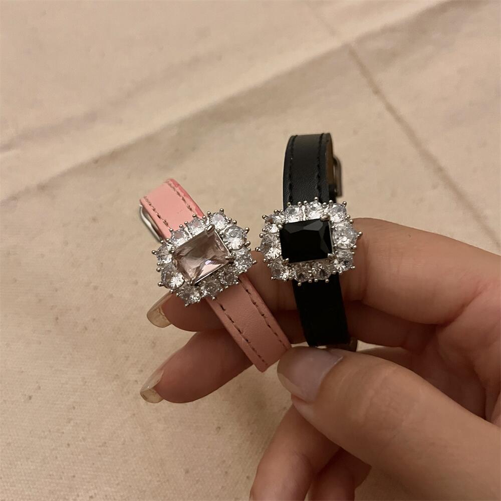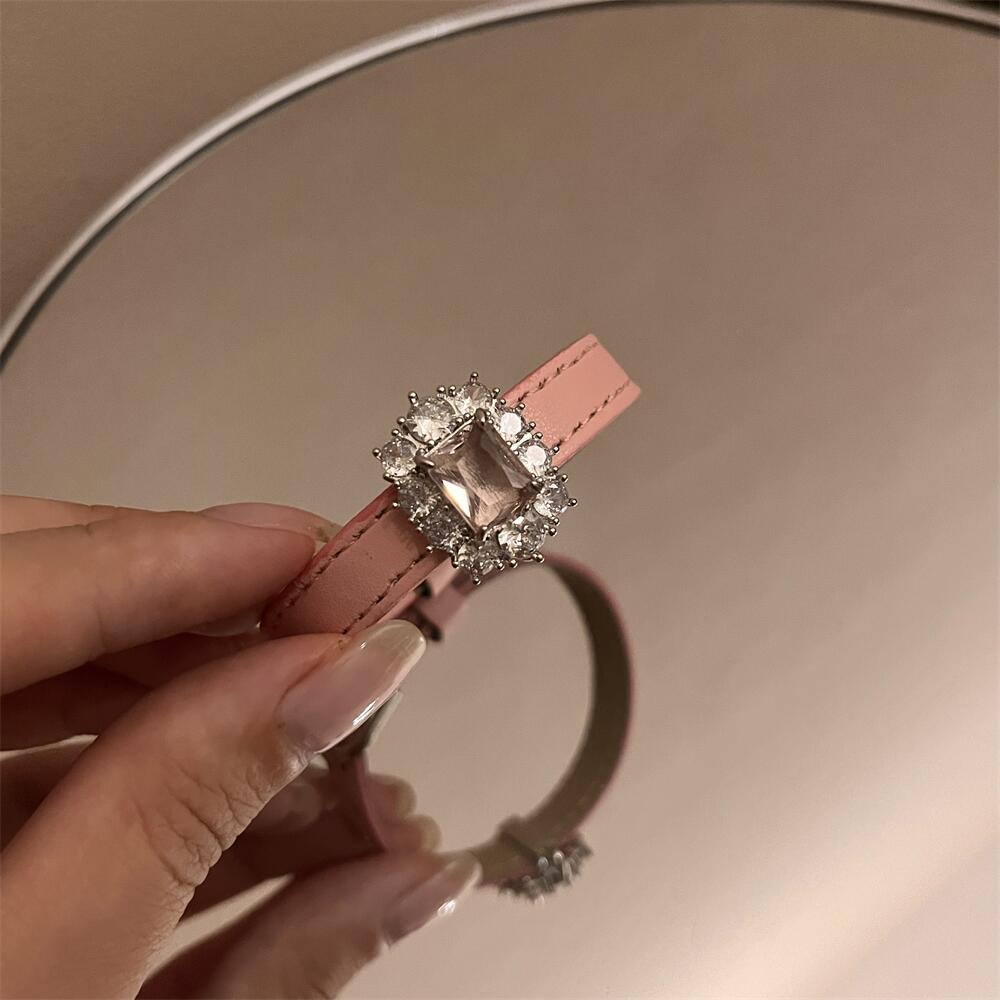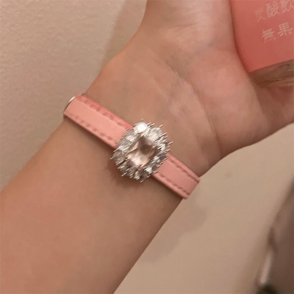 Sisslia Zircon Leather Bracelet Pink Gem Fashion All-In-One Wrist Strap Adjustable Bracelet for Woman